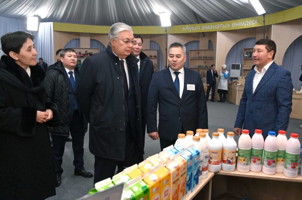 «Ауыл Аманаты» ЖАҢАЛЫҚТАР Қасым-Жомарт Тоқаев «Ауыл аманаты» бағдарламасы аясында іске асырылған жобалармен және аймақтағы ауыл шаруашылығы тауарын өндірушілердің өнімдерімен танысқаннан кейін жергілікті кәсіпкерлермен әңгімелесті