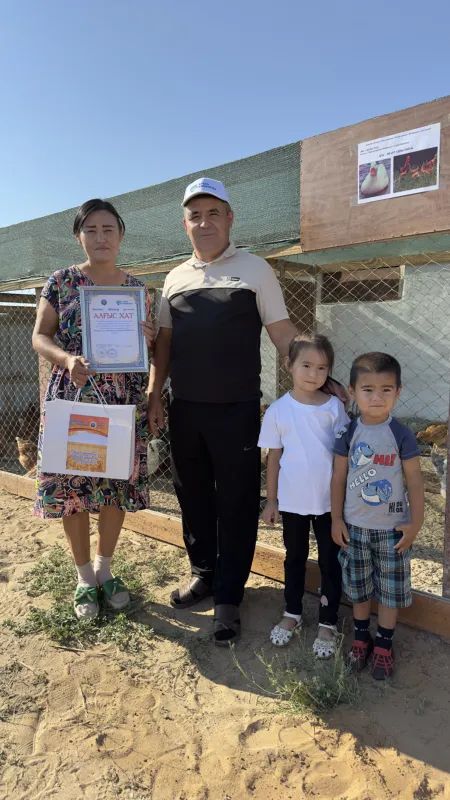 Асылбек пен Мейрамгүлдің алты баласы бар. Мейрамгүл мектепте бастауыш сыныпқа сабақ берсе, Асылбек үйдегі құсқа қарайды. Үй иесі қораны жайлы қылып салған. Шаруашылықпен танысқан соң «Ақтөбе Медиа» ЖШС директоры Раукен Отыншин кәсіп иесін серіктестік атынан марапаттап, естелік сыйлық табыс етті.