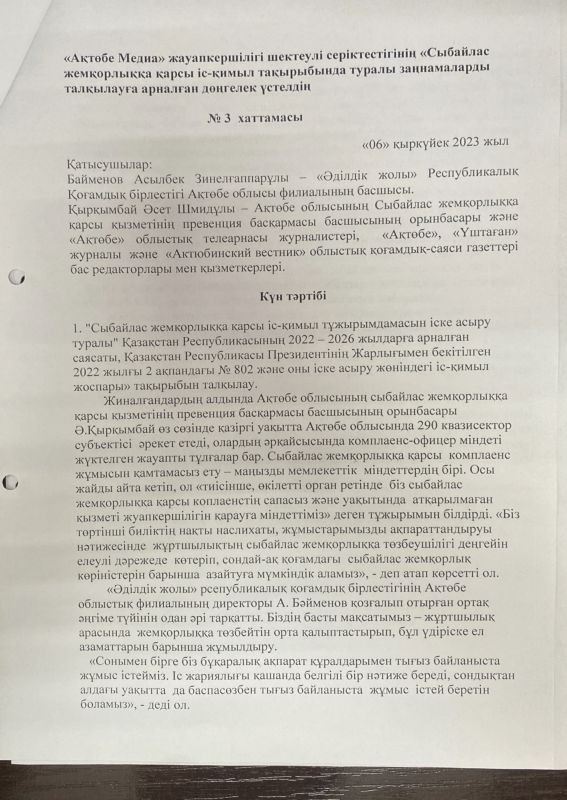 Continue Reading Previous «Ақтөбе Медиа» ЖШС Сыбайлас жемқорлыққа карсы стандартыNext Комплаенс қызметкерлеріне арналған тәжірибе алмасу мақсатында кездесу өтті Тағы да Коррупцияға қарсы күрес Сыбайлас жемқорлық тәуекелдеріне ішкі талдау нәтижелері бойынша анықталған, сыбайлас жемқорлық тәуекелдеріне ұшыраған лауазымдардың тізбесі Коррупцияға қарсы күрес Сыбайлас жемқорлыққа қарсы іс-қимыл жөніндегі 2025 жылға арналған іс-шаралар жоспары Коррупцияға қарсы күрес ХАБАРЛАНДЫРУ