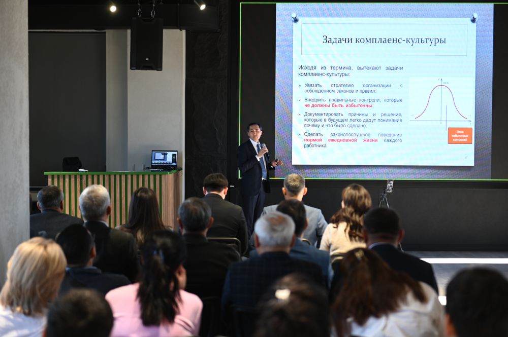 — Семинар комплаенс институтын сәтті енгізген ұйымдар арасында тәжірибе алмасуға мүмкіндік берді.Кезекті іс-шаракомплаенс-офицерлердің біліктілігін арттыру мақсатында Қазақстан Республикасыныңсыбайлас жемқорлыққа қарсы іс-қимыл агенттігінің Ақтөбе облысы бойынша департаментінің қолдауымен ұйымдастырылды.Комплаенс қызметі — жемқорлықтың алдын алуда маңызды рөл атқарады. Облыста квазимемлекеттік сектордың 290 субъектісі бар. Олардың әрқайсысында сыбайлас жемқорлыққа қарсы комплаенс қызметі жүзеге асырылады. Оның ішінде квазимемлекеттік сектордың 8 ірі ұйымында комплаенс-офицерлердің жекелеген лауазымдары қарастырылған. Сондықтан сыбайлас жемқорлыққа қарсы қызмет осы сектордың барлық ұйымдарына жүйелі көмек көрсете отырып, комплаенс-қызметтерге әдістемелік қолдау көрсетуді жалғастырады, — деді Алмат Мырзалиев.